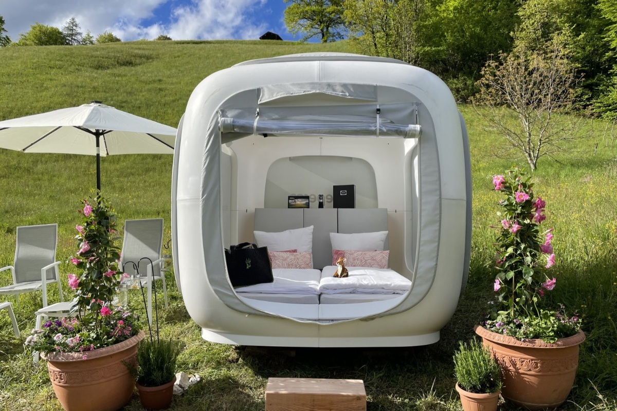 Wir sind aus gutem Grund stolz auf unseren futuristischen Design|sleep Cube. Er wurde speziell für unsere außergewöhnlichen Erlebnisübernachtungen konzipiert.