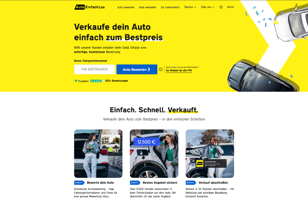Autoeinfachlos macht den Autoverkauf in Österreich einfach, schnell und transparent. Anders als klassische Ankaufsplattformen kaufen wir keine Fahrzeuge selbst an, sondern vermitteln dein Auto an tausende geprüfte Händler – so erhältst du garantiert den bestmöglichen Preis, ohne versteckte Kosten un