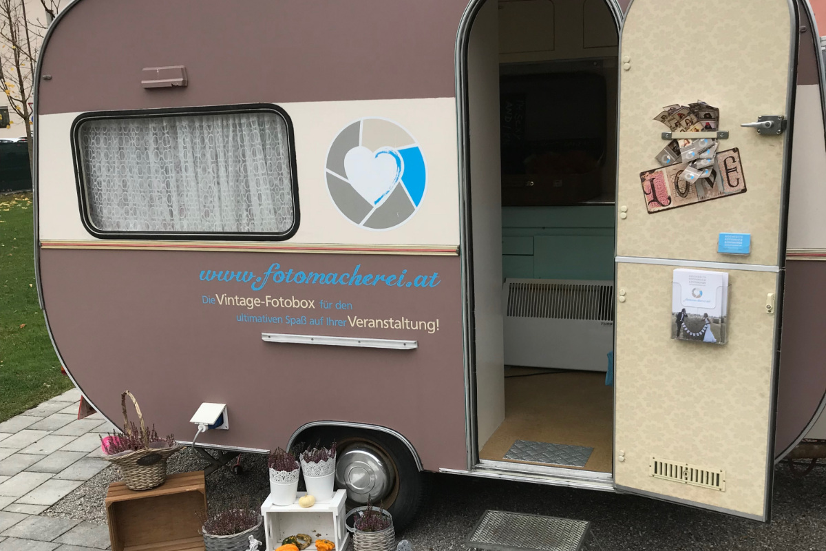 Coole Fotoboxen für jedes Event Unser Vintage Wohnwagen „Pierre“ und der Vintage Pferdeanhänger „Emma“ – ausgestattet mit einer kultigen Fotobox – sind DIE Hingucker für euer Event! Und wenn der Platz nicht reicht, dann kommt „Amélie“ oder der moderne "Paul" zum Zug. Sollte eure Feier im kleinen Rah