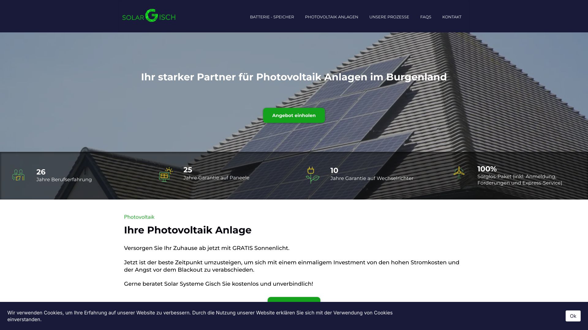 Mit 26 Jahren Erfahrung als österreichisches Unternehmen steht Ihnen die Solar Systeme Gisch GmbH als verlässlicher Partner für Photovoltaikanlagen in Niederösterreich, Burgenland und Wien zur Seite. Wir bieten Ihnen ein umfassendes Leistungspaket, bei dem Sie alle Dienstleistungen aus einer Hand er