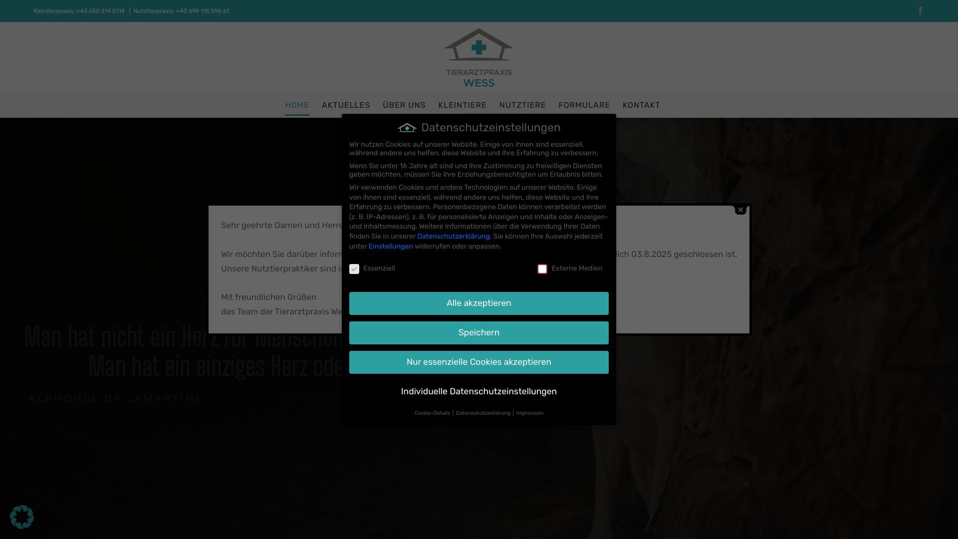 Unsere Tierarztpraxis Wess hat eine eigene Hausapotheke und befindet sich im Zentrum von Gloggnitz. Kundenparkplätze gibt es direkt im Hof. Wir kümmern uns nicht nur um Ihr Haustiere, sondern auch um kranke Nutztiere wie Rinder & Schweine. Unsere Arbeit im Kleintierbereich ist abwechslungsreich