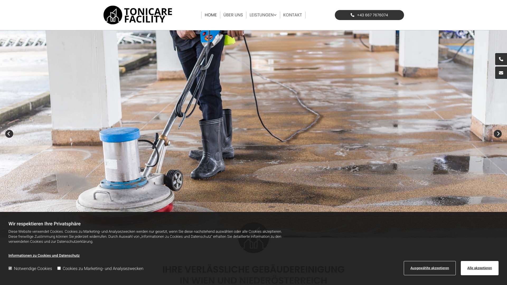 Tonicare Facility – Ihr Meisterbetrieb für professionelle Reinigung in Wien & Niederösterreich. Wir sind spezialisiert auf Umzugsreinigung, Bauendreinigung, Unterhalts- und Büroreinigung sowie Glas- und Spezialreinigungen. Unternehmen und Privatkunden profitieren von zuverlässiger Qualität, flex