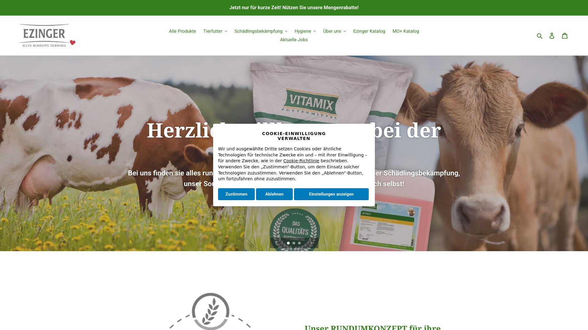 Ezinger GmbH - Hier finden Sie alle nötige Produkte rund um das Tierwohl. Egal ob Tierfutter, Schädlingsbekämpfung oder Tierhygiene, wir bieten eine große Auswahl an Produkten.