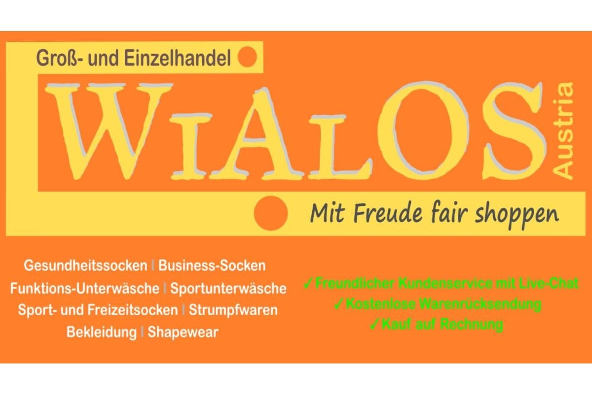 Strumpfwaren | Gesundheitssocken | Freizeit- und Sportsocken | Unterwäsche | Bekleidung Wir sind DER Online-Shop für Socken, Unterwäsche, Bekleidung und Textilwaren… Unser Leitspruch bei wialos Austria „Mit Freude fair shoppen“ nehmen wir beim Wort! Bei uns zählt noch die echte Tiroler Handschlagqua