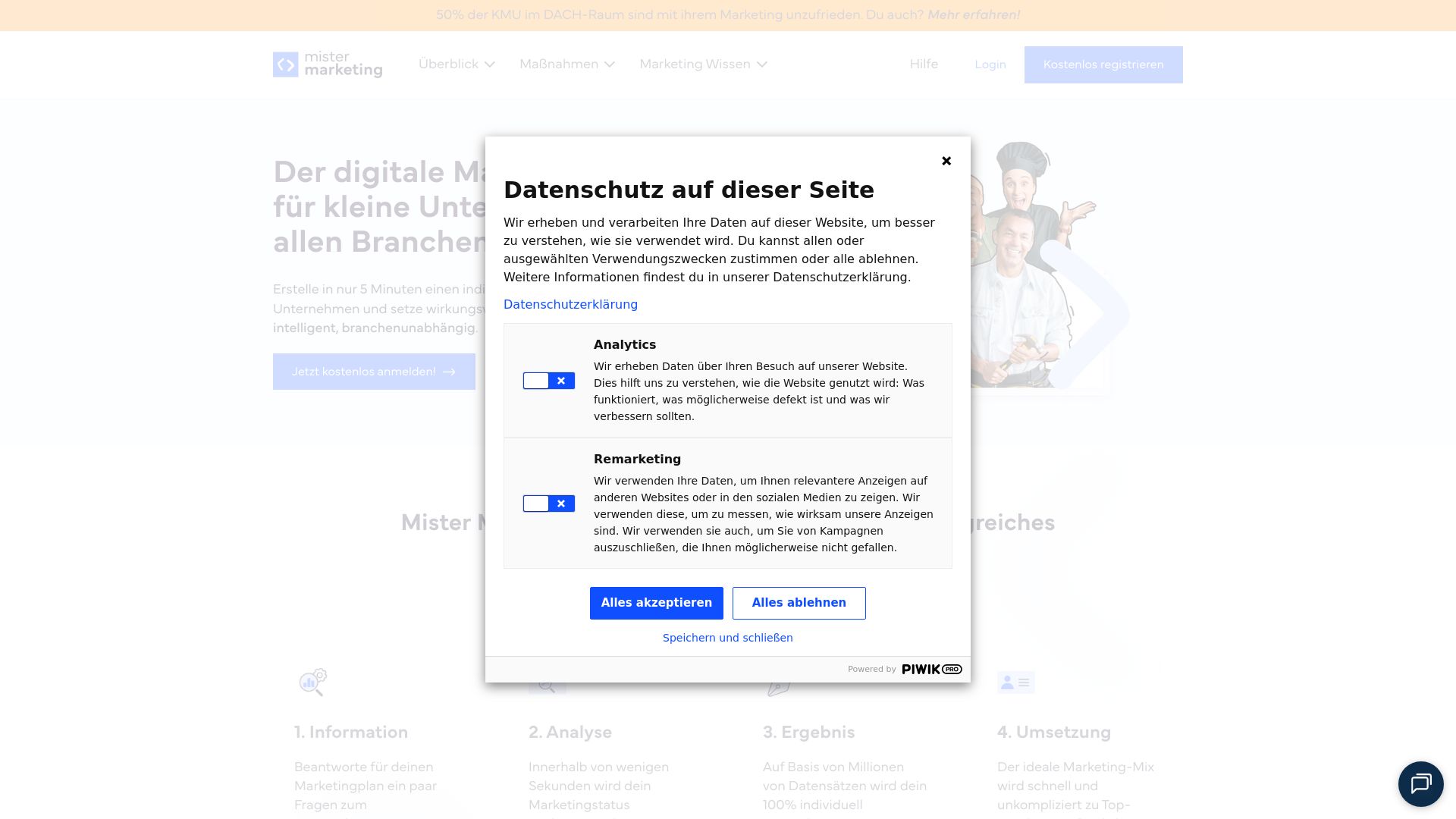 Mit Mister Marketing erstellst du dir einen vollautomatisierten Marketingplan und kannst gezielt an deinem Marketing arbeiten. Es besteht auch die Möglichkeit Marketingpakete zu beanspruchen und somit kannst du dein Marketing auf das nächste Level heben.