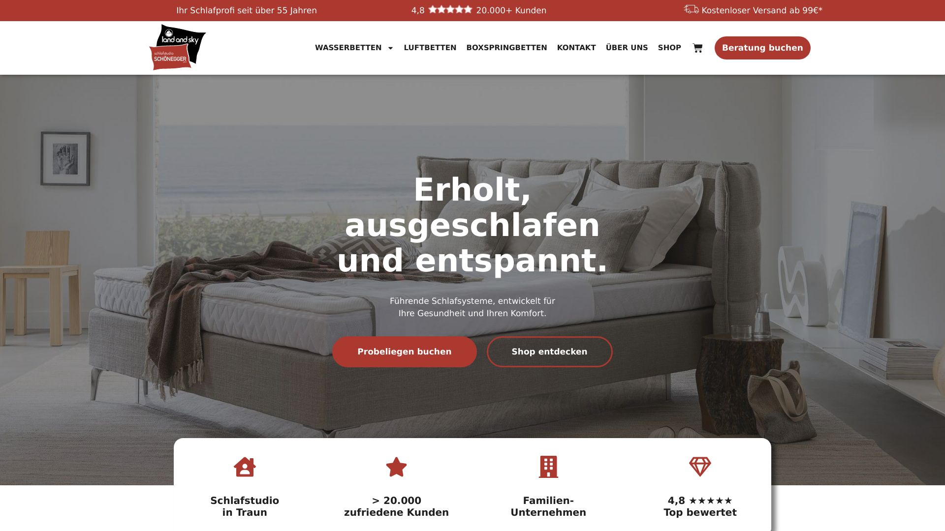 CREATE YOUR DREAM - IHR SCHLAFPROFI SEIT 50 JAHREN Dem gesunden und erfrischenden Schlaf Beachtung schenken, das ist die Philosophie von LANDANDSKY. Fragen Sie jeden, der Erfahrung damit hat: Schlafen auf einem Wasserbett, Luftbett oder Boxspringbett von LANDANDSKY bietet ein ganz besonderes, angene